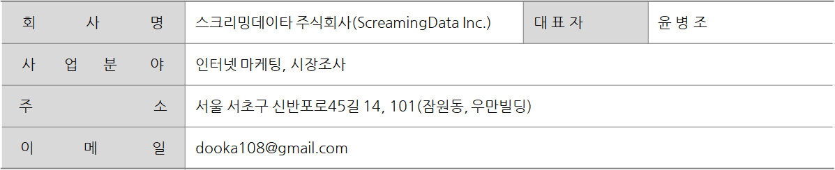 | 스크리밍데이타 주식회사는 2013년 서베이몽키 마케팅 에이전시로 출발해 엄격한 실사품질관리와 집요한 분석으로 제품과 서비스를 시장으로 이어주는 정보를 고객사에게 제공해오고 있습니다. 조사기획과 실사관리부터 최종 보고서까지 필요한 시장조사 서비스만 선별해 경제적인 비용으로 이용할 수 있으며, 마케팅 활동의 출발점이 되는 시장조사 역량을 내재화할 수 있는 지원을 받을 수 있습니다. |