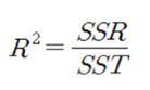 R에서 실행한 단순선형회귀분석의 결과에서 Multiple R-squared는 회귀분석모형이 자료를 얼마나 잘 설명하는지를 나타내는 결정계수입니다. 결정계수는 회귀분석을 통해 얻은 Y의 추정값과 Y의 평균값의 차이를 제곱하여 더한 SSR(regression sum of square)을 실제 Y 값과 Y의 평균값의 차이를 제곱하여 더한 SST(total sum of square)로 나눈 값입니다. 실제 Y값과 Y의 평균값의 차이 중에서 회귀식이 설명하는 부분이 커지면 SSR 역시 커질 것이므로 결정계수 역시 큰 값을 가지게 됩니다. 결정계수는 독립변수가 증가하면 할수록 실제 설명력과는 무관하게 증가하는 문제를 갖고 있습니다. 이러한 문제를 해결하기 위해 자유도를 반영하여 독립변수가 증가하여 자유도가 증가하는 만큼 설명력이 증가하지 못하면 수치가 감소하도록 보정한 것이 수정결정계수(adjusted R-squared)입니다. 아래 수정결정계수 산출식에서 n은 표본크기, k는 독립변수의 개수입니다.